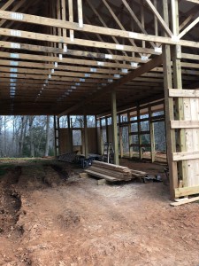 The need for caution is real, tangible and can be unnerving, yet I find comfort and peace in the shelter of my home. The Farm is a special place for our family. The history of this North Carolina Century Farm is palpable for those who walk through the woods, hike to the top of “The Knob” or pause to listen to Crowders Creek as it bubbles and winds its way through the property. The simplicity of an afternoon bicycle ride to the mailbox, yes it is that far, is a pleasure that calms the soul. The old workshop holds the unique smells of projects from the past and denotes hope for what is to come. The new barn, while under construction, is rising from the red clay, to offer future shelter to horses, ponies and more.