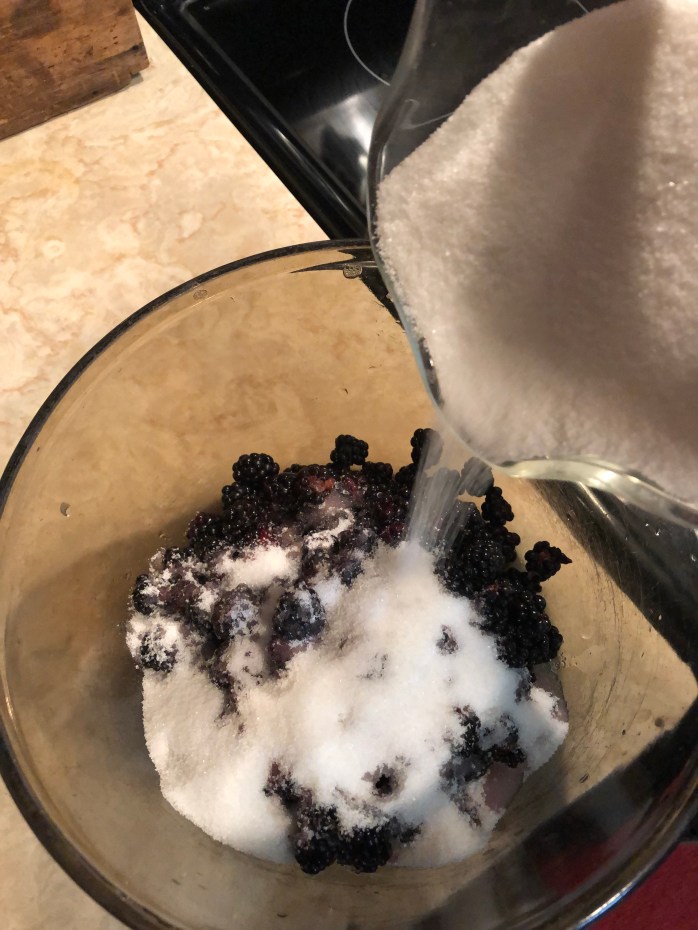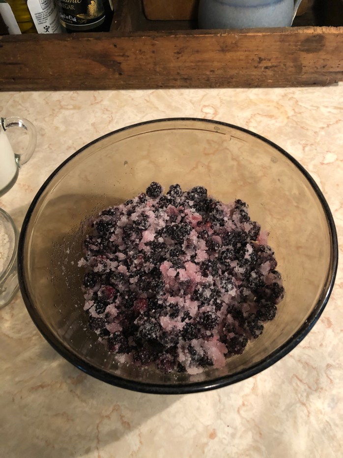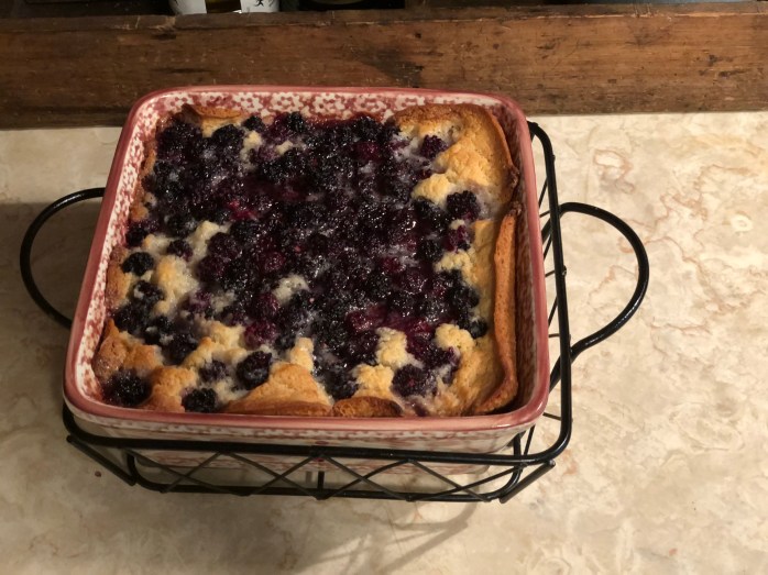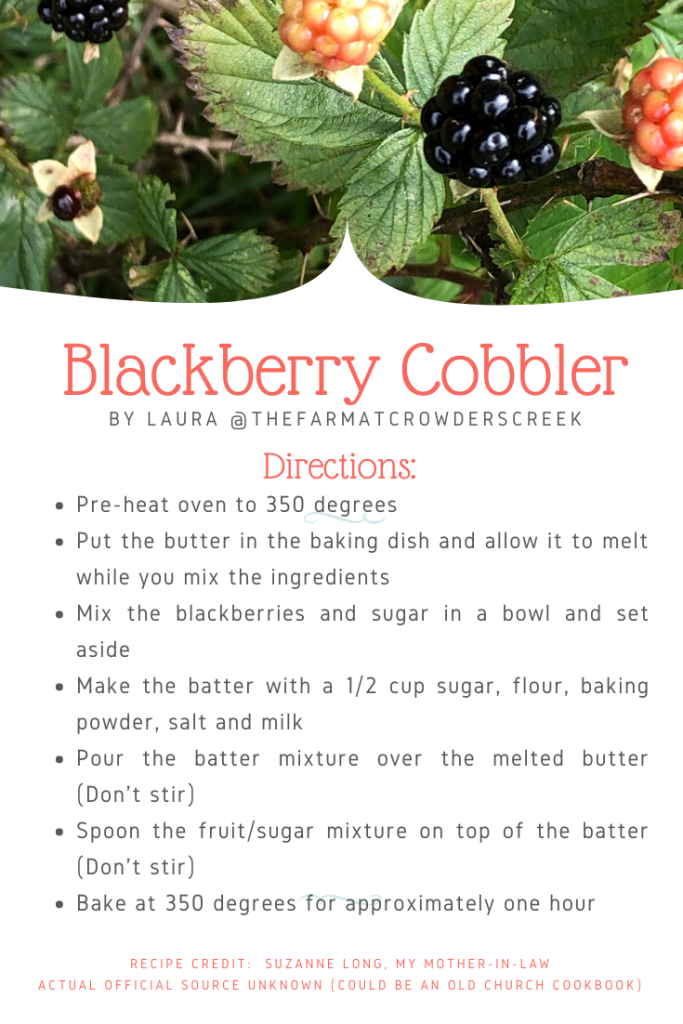 Hello from The Farm at Crowders Creek. I hope that you are having a great week and that you are enjoying these first few official days of summer! Last week I posted a short video on Instagram in which I promised that I would share my blackberry cobbler recipe and some information about the blackberry wine I am making. So, as promised, let’s get to it!